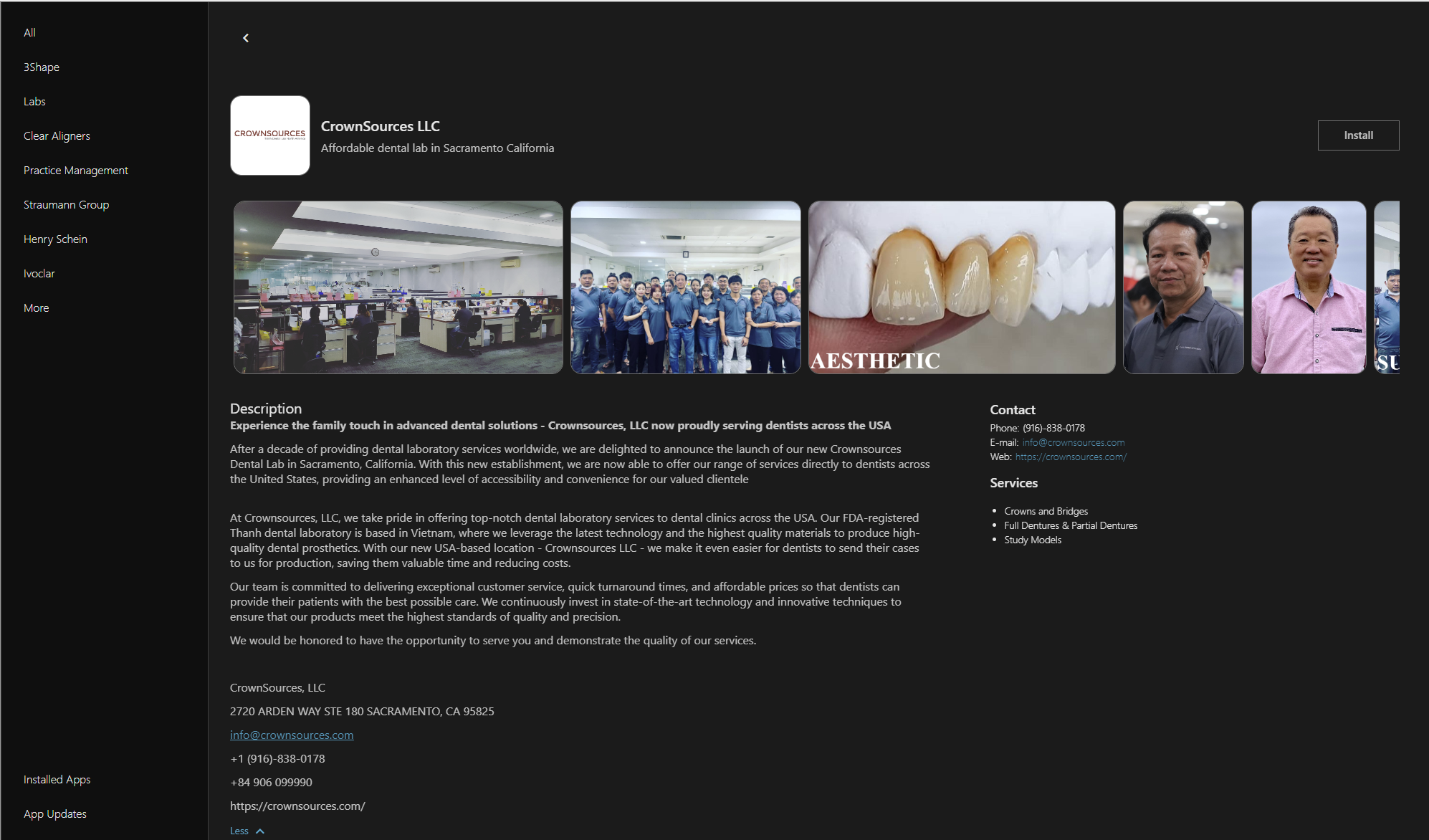 Connecting with CrownSource, LLC has never been easier, thanks to our presence on the 3Shape Unite Store. Clinics can now enjoy seamless communication for treatment design, production, and order tracking. With our unified platform, there's no more fragmentation in receiving case files, and no need to switch workflows between different platforms.